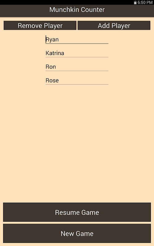 Easy to use level counter for up 6 players. All levels displayed on one screen.