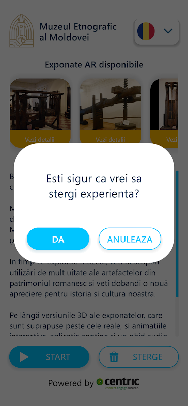 MuzeAR ایپ ہر کسی کے لیے دستیاب ہے اور اسے رومانیہ کے پیلس آف کلچر آئیاسی کے اندر، مالڈووا کے ایتھنوگرافک میوزیم کا دورہ کرتے ہوئے تجربے کو بڑھانے کے لیے استعمال کیا جا سکتا ہے۔