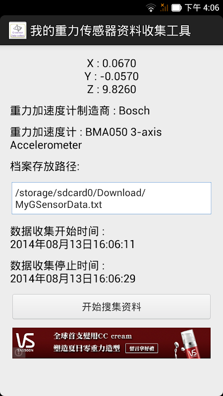 This tool can collect G-sensor data and save in the file; provide engineering analysis purposes.