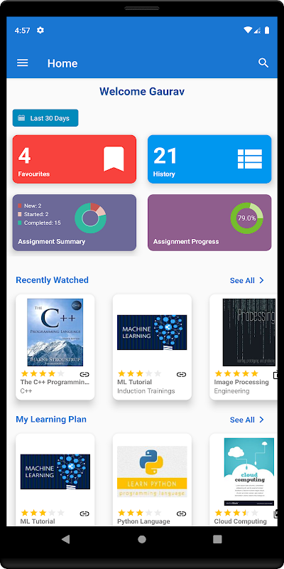 This app aims to deliver e-Learning content , allowing user to handle trainings and track their progress. This form the part of LMS platform, helping Business HR team aims to digitalise the existing content, create e-learning content, organize it into courses, deliver the content, assign trainings to users, monitor & assess their performances, and provide a clear career path to every user.