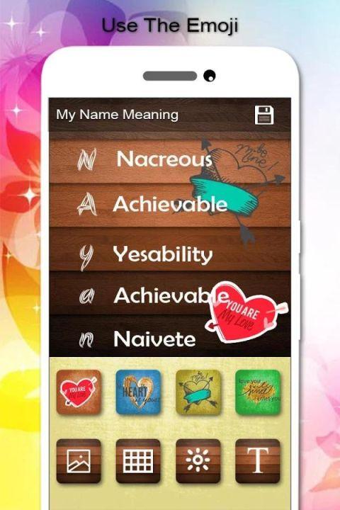 My Name meaning Application help you to check what is behind your name and make a picture with your name meaning. The information in your name can reveal your destiny.
