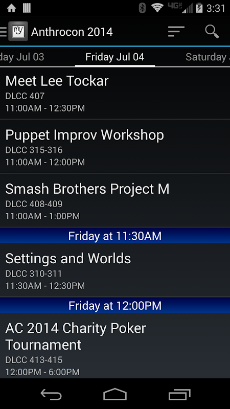 * Convention schedule, searchable and sortable