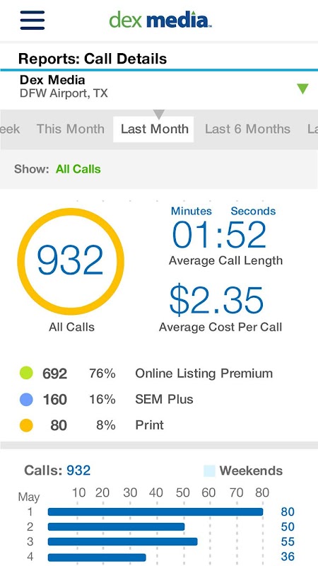 •Track Calls, Impressions, Clicks traffic on an easy-to-read dashboard