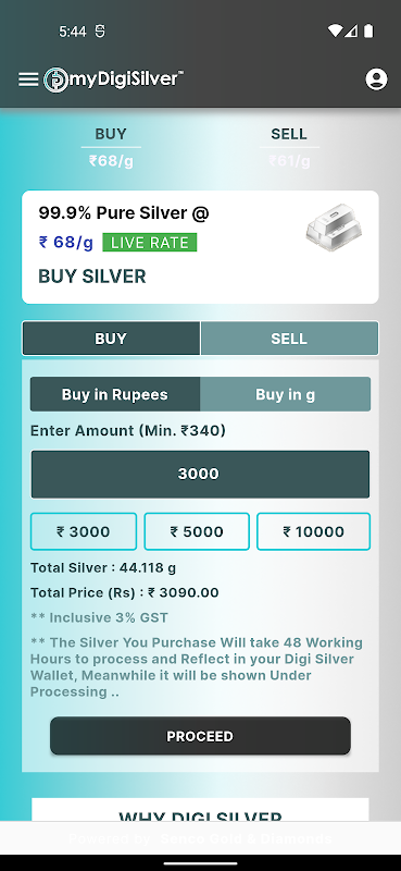 اب، مسابقتی شرح پر MyDigiSilver ایپ پر صرف چند کلکس کے ساتھ سلور خریدیں یا بیچیں۔