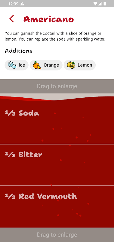 3. شیشے کے اندر کاک ٹیل حصوں کو ڈالنے کے لیے اسکرین پر عمل کریں۔