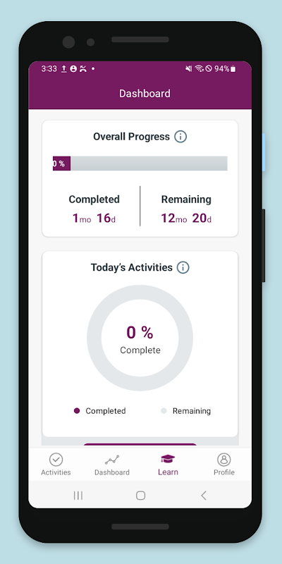 - ڈیش بورڈ - مطالعہ اور موجودہ سرگرمیوں میں مجموعی پیش رفت کا جائزہ لیں۔