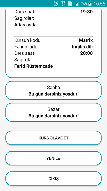 Müəllim kimi dərs cədvəlinə, iştirak edən şagirdlərin siyahısına baxa bilərsiniz.