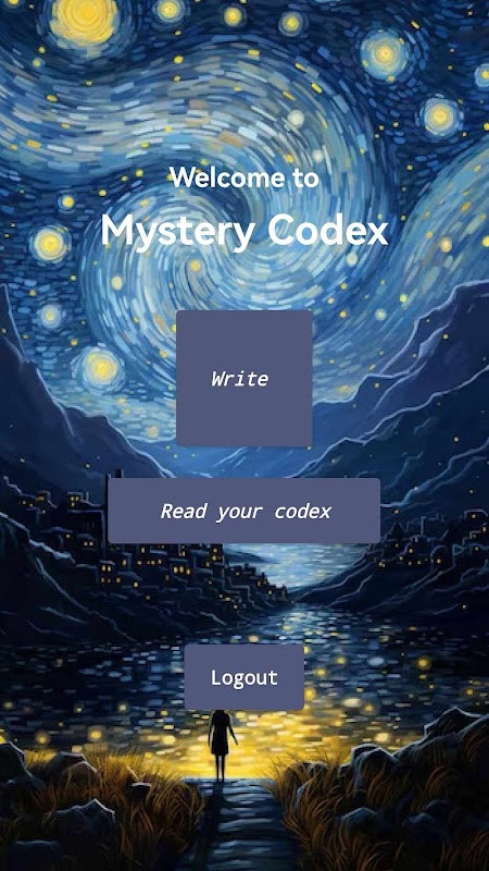 صارف دوست انٹرفیس ایک ہموار تجربہ پیش کرتا ہے۔ خوش آمدید صفحہ پر، اپنی تخلیقی صلاحیتوں کو اجاگر کرنے کے لیے "لکھیں" بٹن تلاش کریں۔ اپنے اندراجات کے لیے تاریخ اور وقت مقرر کرکے ہر لمحے کے نچوڑ کو حاصل کریں۔ اپنے خیالات کو ڈیجیٹل کینوس پر ڈالیں اور Mystery Codex کی انکرپشن کی یقین دہانی کے ساتھ انہیں محفوظ طریقے سے محفوظ کریں۔ آپ کی رازداری سب سے اہم ہے، اور ایپ آپ کے انتہائی ذاتی تاثرات کے لیے ایک پرسکون جگہ فراہم کرتی ہے۔