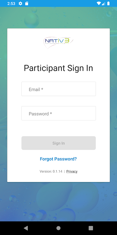 NATiV3 کے لئے ایک کلینیکل اسٹڈی ایپ۔ ایپ صرف NATIV3 کے مطالعہ میں حصہ لینے والوں کے لئے ہے۔ اگر آپ کو اس مطالعہ میں حصہ لینے کے لئے مدعو نہیں کیا گیا ہے تو ، براہ کرم ایپ ڈاؤن لوڈ نہ کریں۔ ایپلی کیشن ایک موبائل ہیلتھ پلیٹ فارم (MHP) حل ہے جس میں شرکاء کو ایڈیری اور ای پی آر او اندراجات کو مکمل کرنے ، انتباہات موصول کرنے ، شیڈول تقرریوں کو دیکھنے اور ویڈیو مشاورت میں شرکت کی اجازت دیتا ہے۔