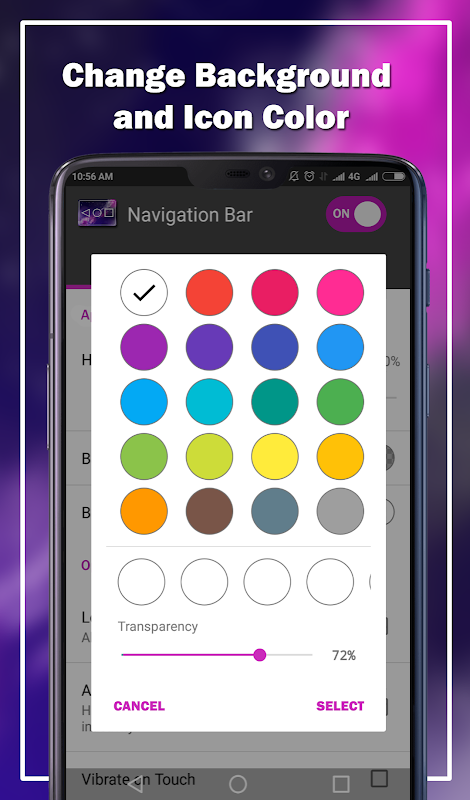 * Long press icon arrow moves to hide Navigation Bar after tap notification to show again.