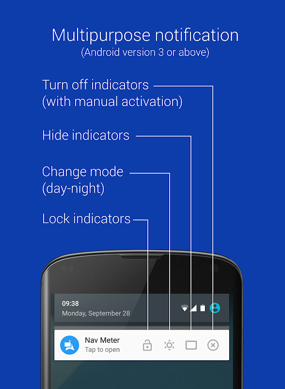 NavMeter allows you to display speed, altitude, compass, and coordinates indicator over the navigators that don’t provide this informations.