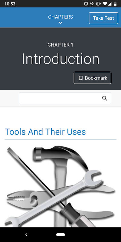 Using an interactive menu, the app is organized into chapters, with learning objectives for each group of tools. Information about specific tools is accessed simply by using this interactive menu feature. Figures and images are available throughout the course to provide additional information about operation of tools and their uses.