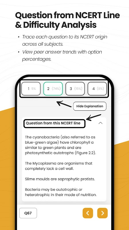 NCERT ابھیاس بیچ NEET کی تیاری کے لیے مکمل NCERT پر مبنی Q پریکٹس کے لیے ایک ون اسٹاپ حل ہے۔ آپ PYQ نشان زدہ NCERT کے ساتھ نہ صرف پرانے اور نئے NCERT کے صفحہ وار پریکٹس کر سکتے ہیں، بلکہ آپ NCERT کے ذریعے پڑھتے ہی PAGEWISE تینوں مضامین کے لیے 25 سال کی NEET، AIIMS اور AIPMT PYQ کی کوشش بھی کر سکتے ہیں۔ اس کے اوپری حصے میں، یہ سب تفصیلی آڈیو اور ویڈیو حل کے ساتھ آتا ہے، تقریباً تمام Q's کی ٹیکسٹ وضاحتوں کے علاوہ، NCERT فارمنگ لائن ہے جس سے Q پوچھا جاتا ہے، Q's پر کیلکولیشن پر مبنی Q & PYQ مارکنگ کو حل کرنے کے اشارے اور اقدامات! بُک مارک فیچر آپ کو مشکل Q کے بعد میں دوبارہ دیکھنے کی اجازت دیتا ہے!