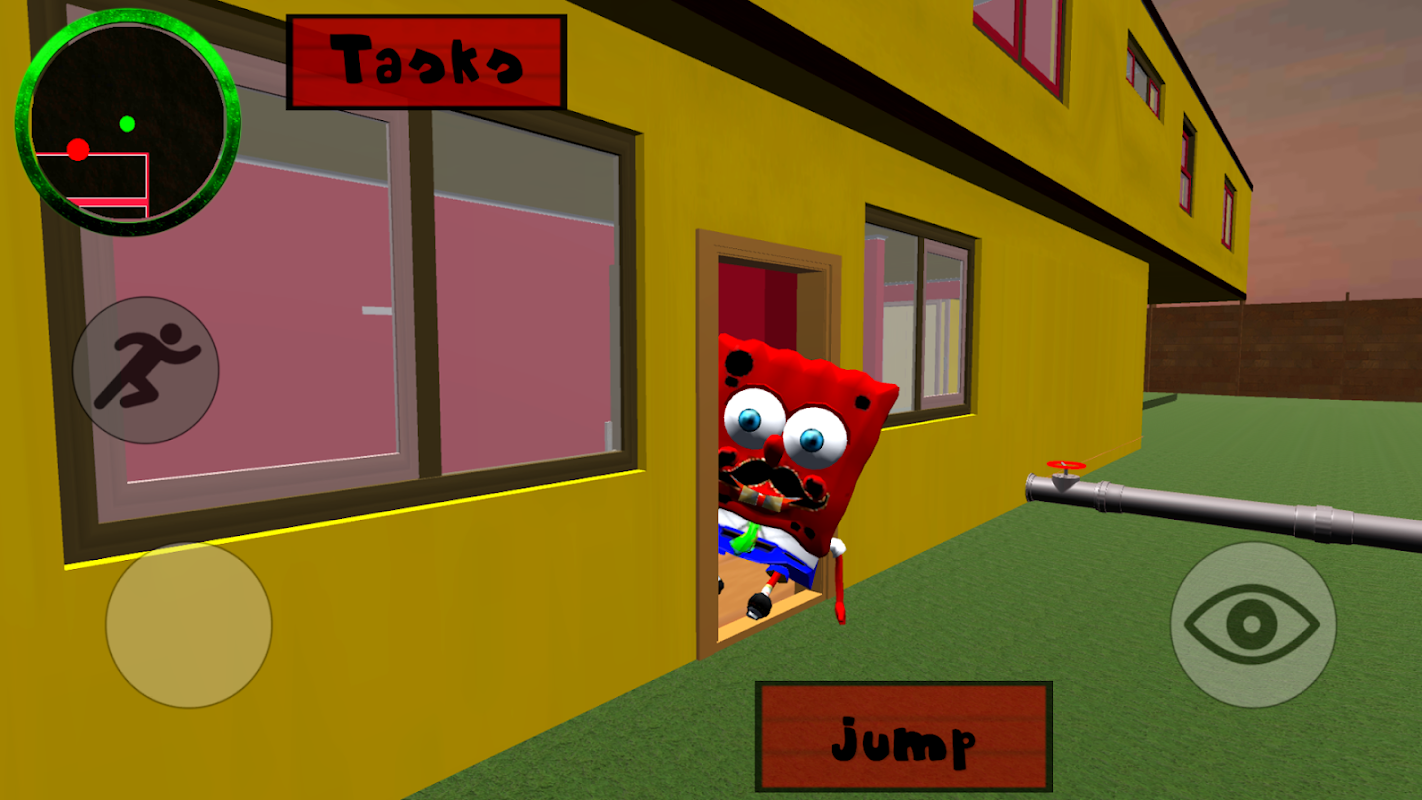 One day you discover some changes in the behavior of your Sponge Neighbor Bob! Often you see strange people with big bags near his house! Sometimes you hear some strange sounds, like cries and noises of fighting... And one dark night the sponge neighbor drags out of his house a bag with something that terribly reminiscent of the sponge body. It becomes clear that something terrible is happening. You can not stay away-you need to get into the neighbor's house and find out what's going on! However, this will not be so easy! But Don't be scared! Just say "Red Sponge , I am not afraid" or "Hello, Bob, you are bad Sponge"and challenge with him!