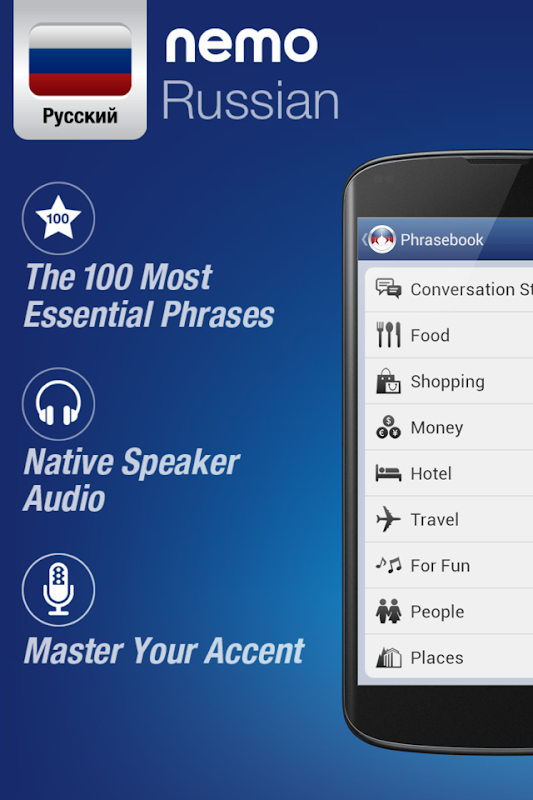 نیمو آپ کو فوری طور پر اور اعتماد کے ساتھ روسی زبان میں انتہائی مفید الفاظ بولنا شروع کرنے کے لیے بنایا گیا ہے۔ دنیا بھر سے لاکھوں ڈاؤن لوڈ کے ساتھ ، نیمو اب اینڈرائیڈ فونز اور ٹیبلٹس کے لیے دستیاب ہے۔