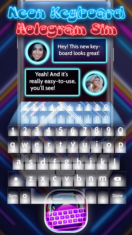 This keypad background is excellent for anyone who wants stand out in the crowd! Be it for jokes and pranks, or the neon glow keyboard on your device, everyone will notice you when you install our 🤡 Neon Keyboard Hologram Sim 🤡