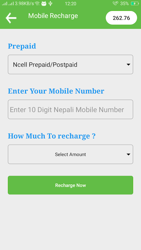 نیپال میں ریچارج کرنا آسان نہیں تھا ہم نے اسے اتنا آسان بنا دیا ہے کہ آپ اپنے انڈین ڈیبٹ کارڈ سے تنخواہ میں لاگ ان کریں اور نیپال کے تمام ٹیلی کام کا فوری ریچارج حاصل کریں