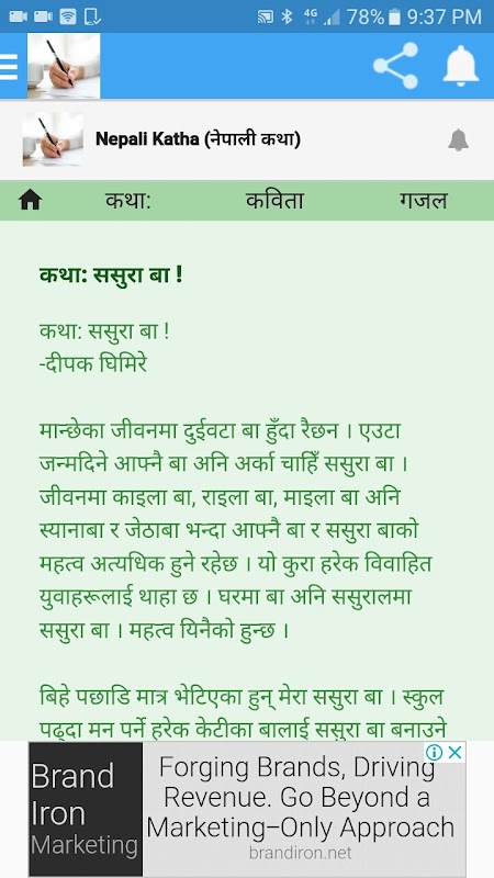نیپالی ساہتیہ ایپ نظم، کہانی، گجل اور مکتک ایپ کے بارے میں ہے۔ آپ اس ایپ میں اپنی کہانی، نظم، گجال اور مکتک شائع کر سکتے ہیں۔