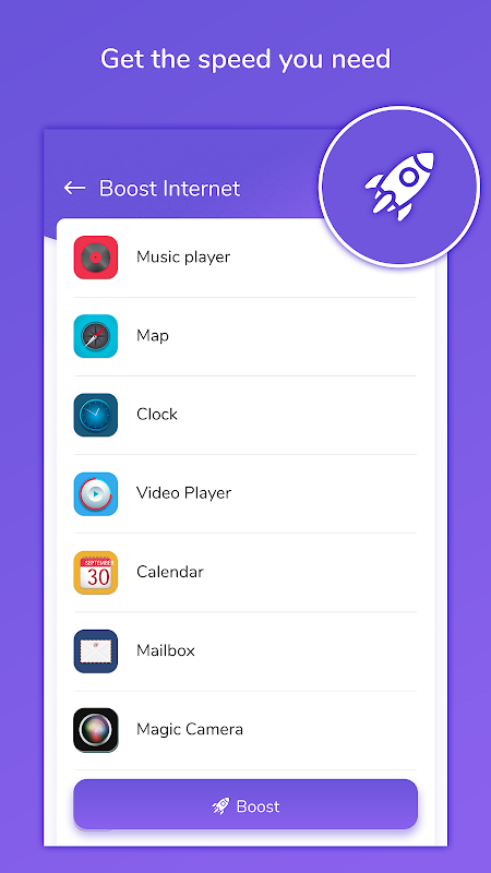 - Complete list of running apps which are using internet and to boost internet for better browsing.