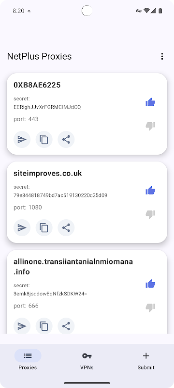 - شیئر کریں اور تعاون کریں: آپ کے پاس کام کرنے والا VPN یا TG Proxy ہے؟ اسے کمیونٹی میں آسانی سے جمع کروائیں اور دوسروں کو جڑے رہنے میں مدد کریں۔