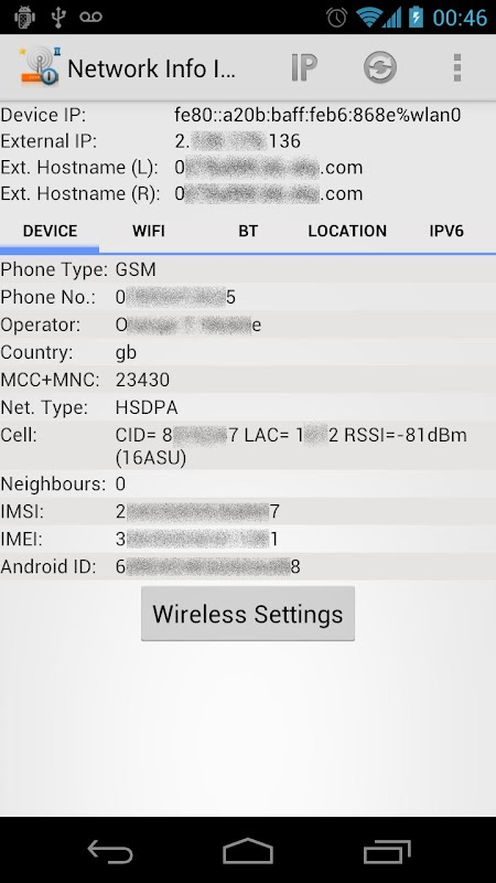 All the network information you'll need. WiFi/Bluetooth/Cell/IPv6.
