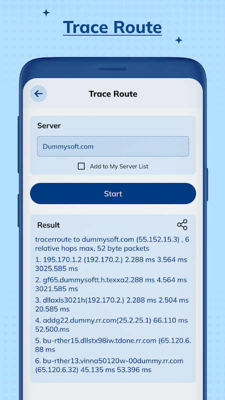 اپنے منتخب کردہ IP اور میزبان نام کا ٹریسروٹ شروع کرنے کے لیے ایک تھپتھپائیں۔