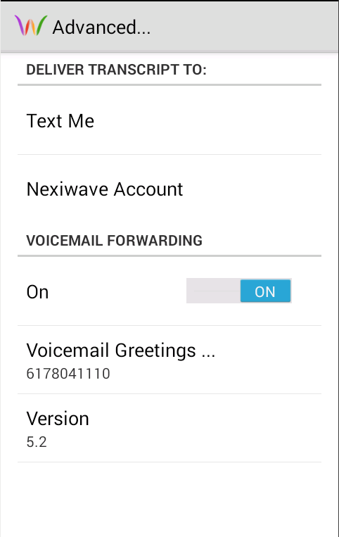 Enable Nexiwave Voicemail Transcription for your mobile device with just one click. After enabled, Nexiwave will become your voicemail provider. Your voicemail will be transcribed and delivered to you as text or email.
