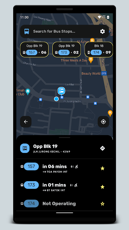 سنگاپور کے لئے ایک آسان اور خوبصورت بس ٹائمنگ ایپ (ڈارک موڈ میں)