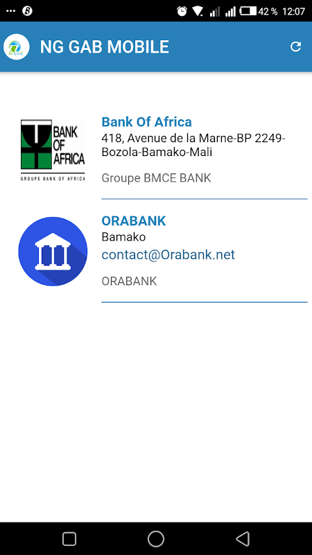 Next GAB est l'application mobile qui réduit les déplacements unitiles pour faire le tour de la ville à la recherche de Distributeur de Billet disponible et qui marche. Avec Next GAB, soyez notifiés dès qu'un GAB tombe en pane. Next GAB vous permet de signaler l'indisponibilité d'un Guichet à tous vos compatriotes qui ont installer l'application. Next GAB mettra tous vos signalement en état d'alerte (Jaune) qui signifiera qu'un utilisateur de GAB est passé trouvé le GAB en état de problème, donc pour éviter la visite unitile par un autre utilisateur, il met tout simplement en état d'alerte. Next GAB affichera tous les GAB indisponibles signalés par les agences de la banque elles même en état d'indisponibilité (Rouge) et une notifcation est envoyée à tous les utilisateur de GAB ayant installé Next GAB. Next Gab aussi vous permet de voir les GAB de votre ville sur Google Map ainsi que les agence aussi. Next GAB vous permet de contacter directement une agence par son numéro sans avoir à composer.
