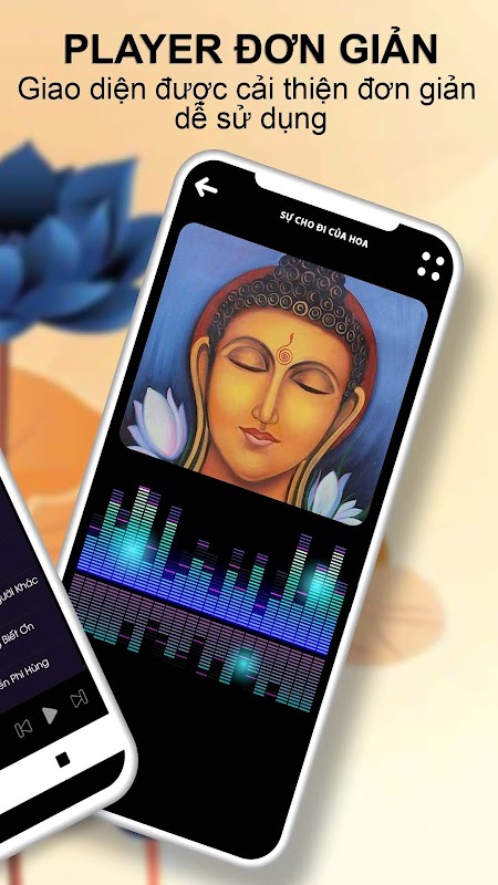 ایپلی کیشن کو ایک سادہ، استعمال میں آسان انٹرفیس اور آسان تلاش کی خصوصیت کے ساتھ ڈیزائن کیا گیا ہے تاکہ صارفین کو گانے اور مکالموں کو جلدی اور آسانی سے تلاش کرنے اور منتخب کرنے میں مدد ملے۔ اس کے علاوہ، موسیقی کا وقت مقرر کرنے کی خصوصیت صارفین کو موسیقی سننے اور روحانی طور پر مؤثر طریقے سے مشق کرنے پر پوری توجہ مرکوز کرنے میں مدد دیتی ہے۔
