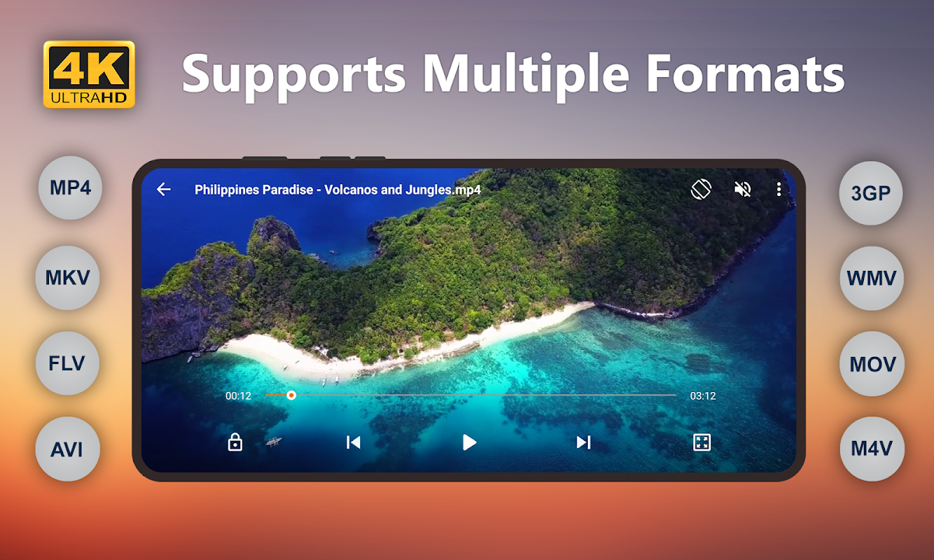 ملٹی پلیئر کنٹرولز کے ساتھ اپنے فون پر HD ، فل ایچ ڈی ، 4K ویڈیوز آسانی سے چلائیں۔