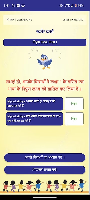 نپن لکشیا ایپ طالب علم کے سیکھنے کی سطح کو نپن لکشیا کے مقابلے میں جانچتی ہے۔