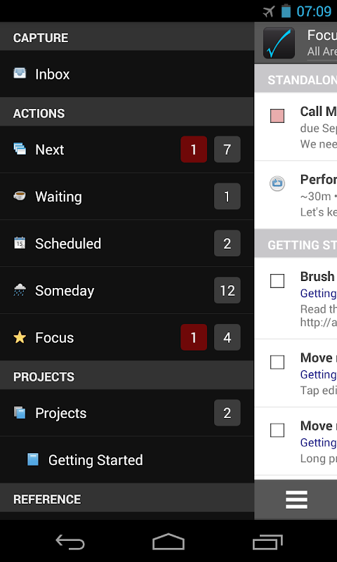 Nirvana is a GTD® task manager for Getting Things Done®.