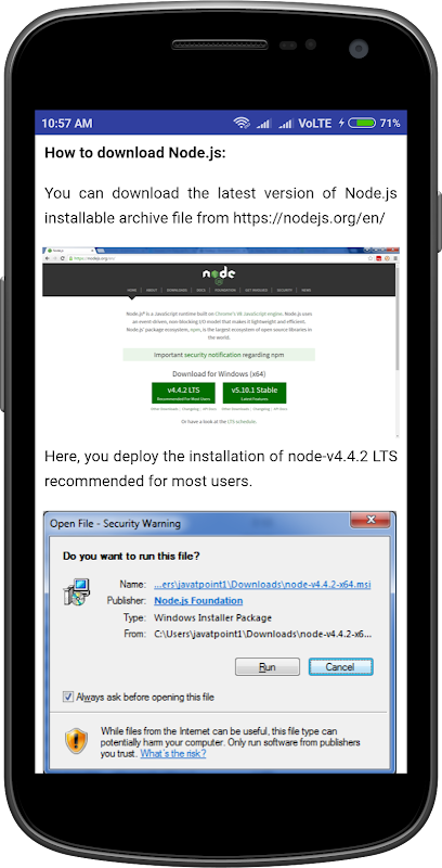 Node Js Tutorial app collections of Categories are below and provide all this Topic Like,
