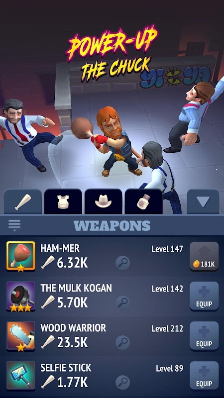 - Power up the Chuck with chainsaws, selfie sticks and fight your way through the city jungle in this offline rpg freegame!