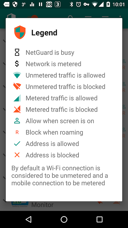 یہ آپ کی ذاتی معلومات کو انٹرنیٹ پر بھیجنے سے بچاتا ہے۔ جب کوئی ایپ انٹرنیٹ تک رسائی حاصل کرنے کی کوشش کر رہی ہوتی ہے تو نو روٹ فائر وال آپ کو مطلع کرتا ہے۔ آپ سبھی کو بس اجازت دیں یا انکار کریں کے بٹن کو دبائیں۔