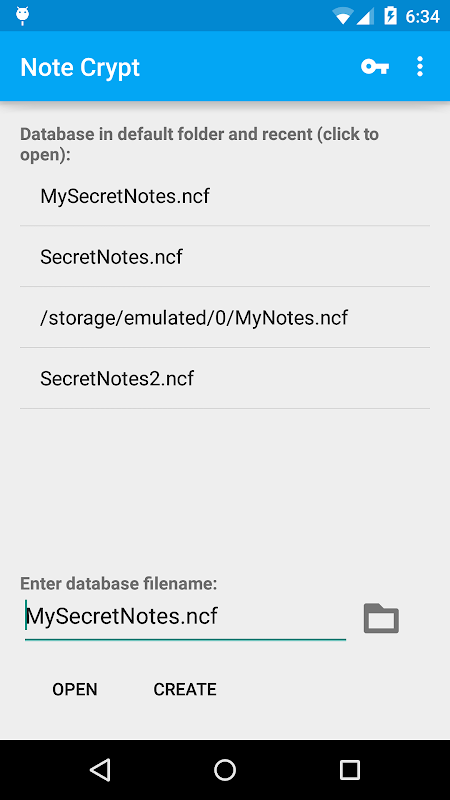 اب ڈیفالٹ ڈیٹا بیس لوکیشن آپ کی بیرونی میموری پر فولڈر NoteCrypt ہے (جیسے /storage/emulated/0/NoteCrypt)