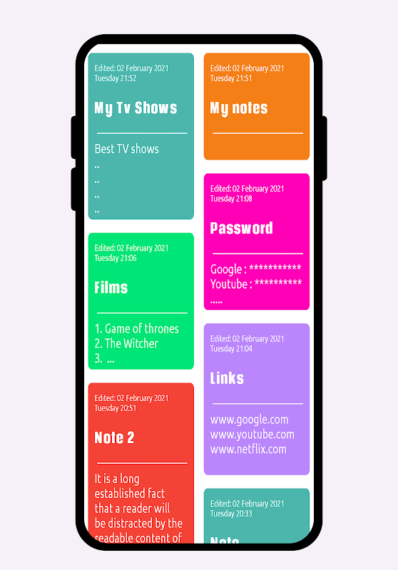 استعمال کرنے میں آسان رنگین حسب ضرورت نوٹ پیڈ ایپ ، جو Android کے لئے دوبارہ ڈیزائن کی گئی ہے۔ نوٹس بالکل مفت لیں۔ یہ درخواست آسانی سے نوٹ لینے کے لئے تیار کی گئی تھی۔ آپ کل 21 رنگوں کے اختیارات کے ساتھ اپنے نوٹ کو پوری طرح سے تخصیص کر سکتے ہیں۔ اگر آپ کی آنکھیں تھک گئی ہیں تو ، تاریک تھیم میں تبدیل کرنا بہت آسان ہے۔ اگر آپ چاہتے ہیں تو ، آپ فوری طور پر گہرے سیاہ تھیم یا سفید تھیم پر جا سکتے ہیں۔ نوٹ کی تلاش کی خصوصیت کی مدد سے ، آپ آسانی سے اپنے نوٹ تلاش کرسکتے ہیں اور ڈھونڈ سکتے ہیں اور جو نوٹس آپ نے آسانی سے لئے ہیں۔ آپ سڑک پر ، گھر میں ، کام پر ، کسی بھی چیز کو جلدی سے لکھ سکتے ہیں۔