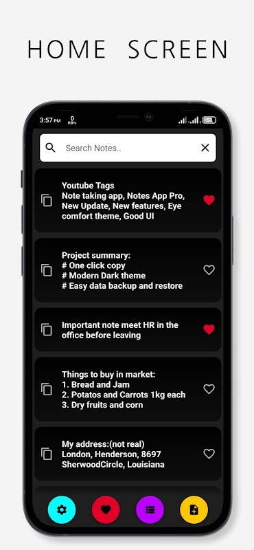 * کلپ بورڈ میں آسان کاپی کے ساتھ جدید نظر آنے والی سیاہ نوٹ ایپ