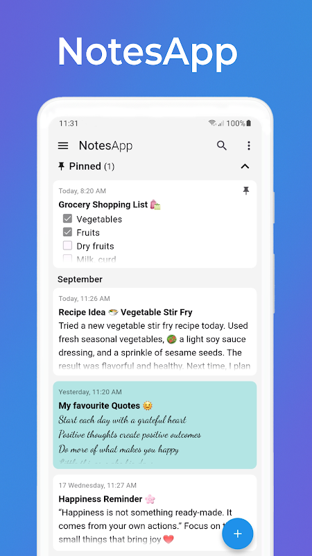 چاہے آپ جرنلنگ کر رہے ہوں، منصوبہ بندی کر رہے ہوں، مطالعہ کر رہے ہوں، یا اپنے اگلے بڑے آئیڈیا کا مسودہ تیار کر رہے ہوں، NotesApp آپ کو واضح طور پر لکھنے، آسانی سے منظم کرنے، اور آپ کی رازداری کی حفاظت کرنے میں مدد کرتا ہے — بغیر کسی بے ترتیبی کے۔