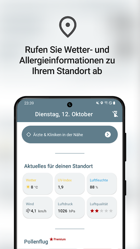 • موجودہ مقام کے لیے پولن کی گنتی (صرف جرمنی میں)۔