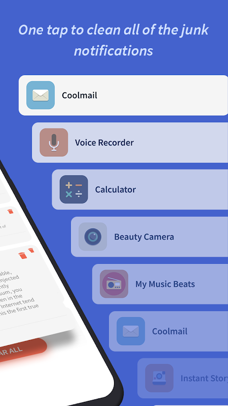 All Notification Blocker helps you to block all unwanted notifications and manage them efficiently in just three tabs. Never miss any notification with the luxury to never get disturbed by any unwanted notification from any Application. Useless notifications will be blocked smartly and gathered together in one place, so the phone notification bar will always be in a clean and tidy status.