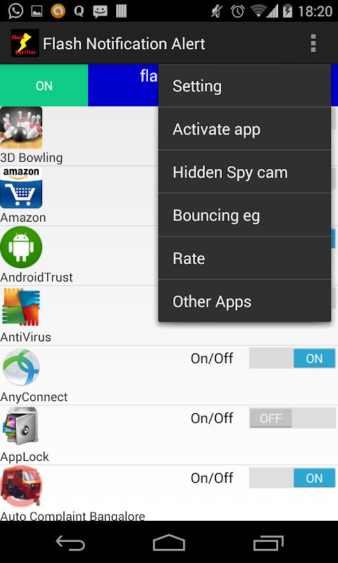 You can select for which application you want to enable this notification flash alert.
