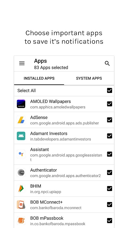 App can also store system app's notifications as well installed apps. You can customize your apps list with easy options.