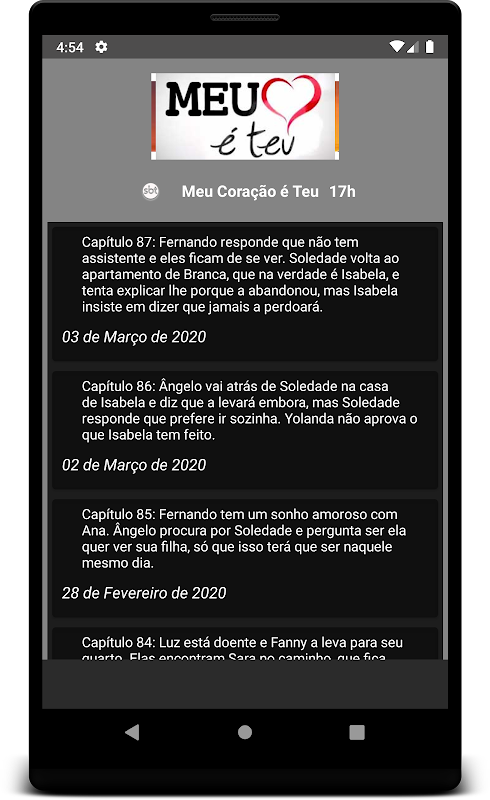 اے پی پی (ایپلی کیشن) آپ کو ان تمام صابن اوپیراوں کے بارے میں معلومات فراہم کرتی ہے جو گلوبو ، ایس بی ٹی اور ریکارڈ ، بینڈ اور ویووا پر نشر ہوتے ہیں۔