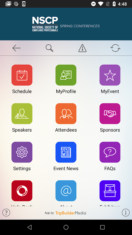 This TripBuilder EventMobile app is provided at no charge by The National Society of Compliance Professionals (NSCP). It was designed and developed by TripBuilder Media Inc. If you have any questions, or need any support regarding how to use this app, please submit a Support Ticket (located within the Help icon in the app).