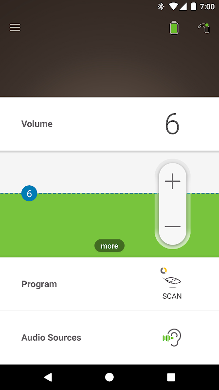 - نیوکلئس 7 ساؤنڈ پروسیسر کی حیثیت اور بیٹری کی سطح دیکھیں