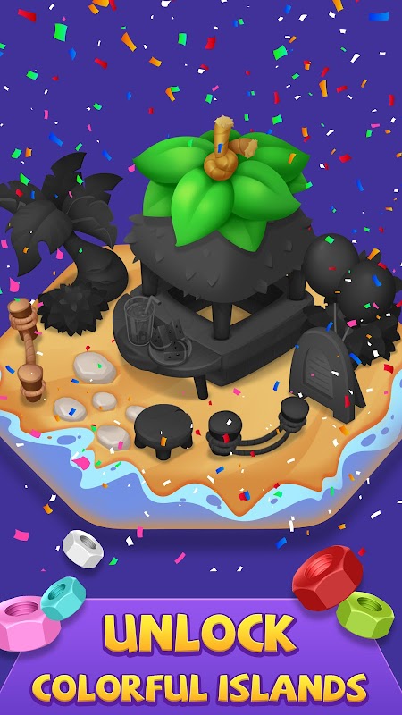 رنگ کے لحاظ سے 4 بولٹس کو ترتیب دیں، پہیلیاں حل کریں، اور آرام دہ جزیروں کو غیر مقفل کریں۔