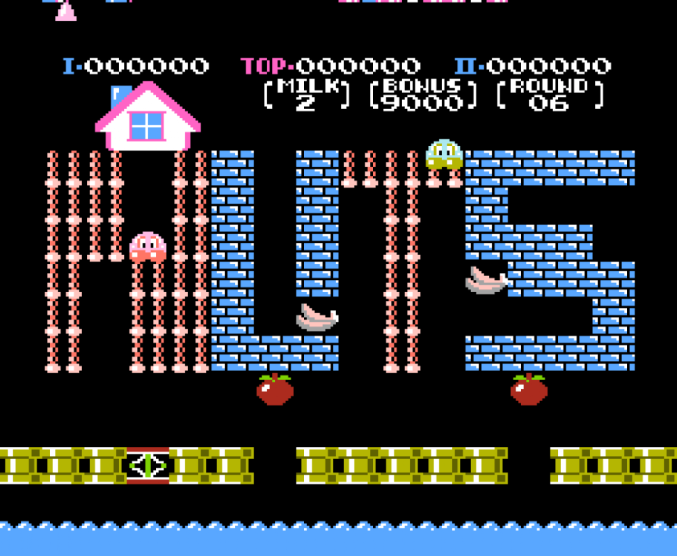 If contact is made at any time during game play with Nuts or other harmful objects such as miniature blimps, Milk will lose a life and have to repeat the current level, with all fruit reset back to their initial positions.