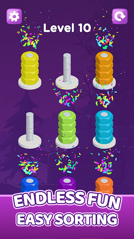 - نشہ آور نٹ بولٹس ترتیب دینے والا گیم پلے - شروع کرنا آسان، مہارت حاصل کرنا مشکل